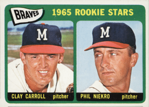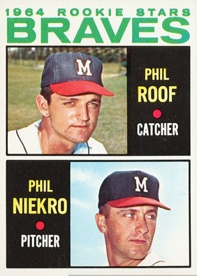 Niekro was a relief pitcher early in his career, having come out of the bullpen in 98 of his first 99 appearances. He bounced back and forth between the major and minor leagues in 1964, 1965, and 1966. Niekro’s spot in the majors was so tentative that he appeared on rookie cards in both 1964 and 1965.