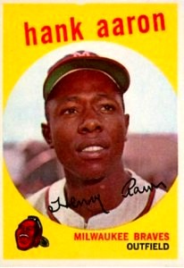 In 1959 Aaron led the majors in hitting with a .355 average, total bases with 400, hits with 223, and slugging percentage at .636. He had 39 home runs, 46 doubles, seven triples, scored 116 runs, and drove in 123; his on base percentage was .401. Despite such a strong season, Aaron finished third in the balloting for the NL MVP Award, which means two other players must have had better years than he did. Well, maybe not.